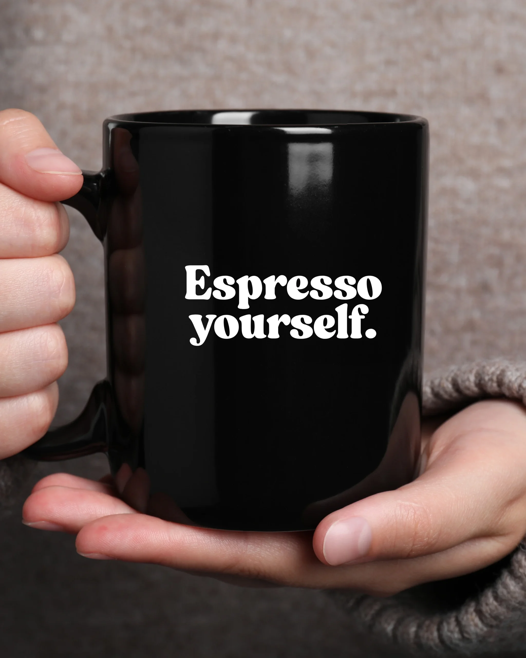 Because every sip is a chance to say something bold. The “Espresso Yourself” Mug blends clever wordplay with a sleek black finish, making it the perfect gift for coffee lovers who enjoy a shot of personality with their brew.